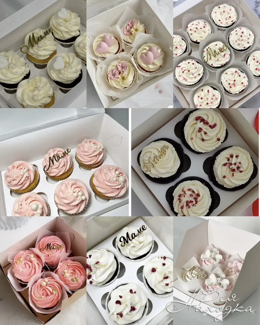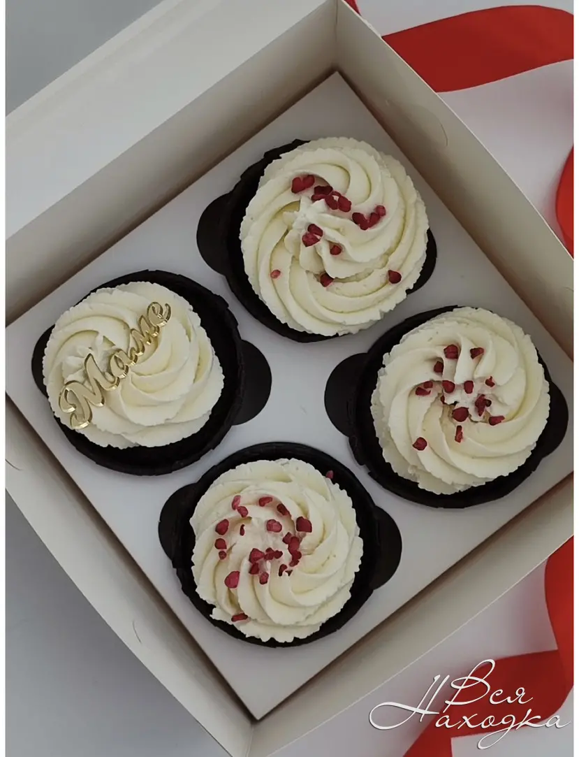 Капкейки ванильные, шоколадные, красный бархат. Внутри ягодное конфи. Декор на ваш вкус.