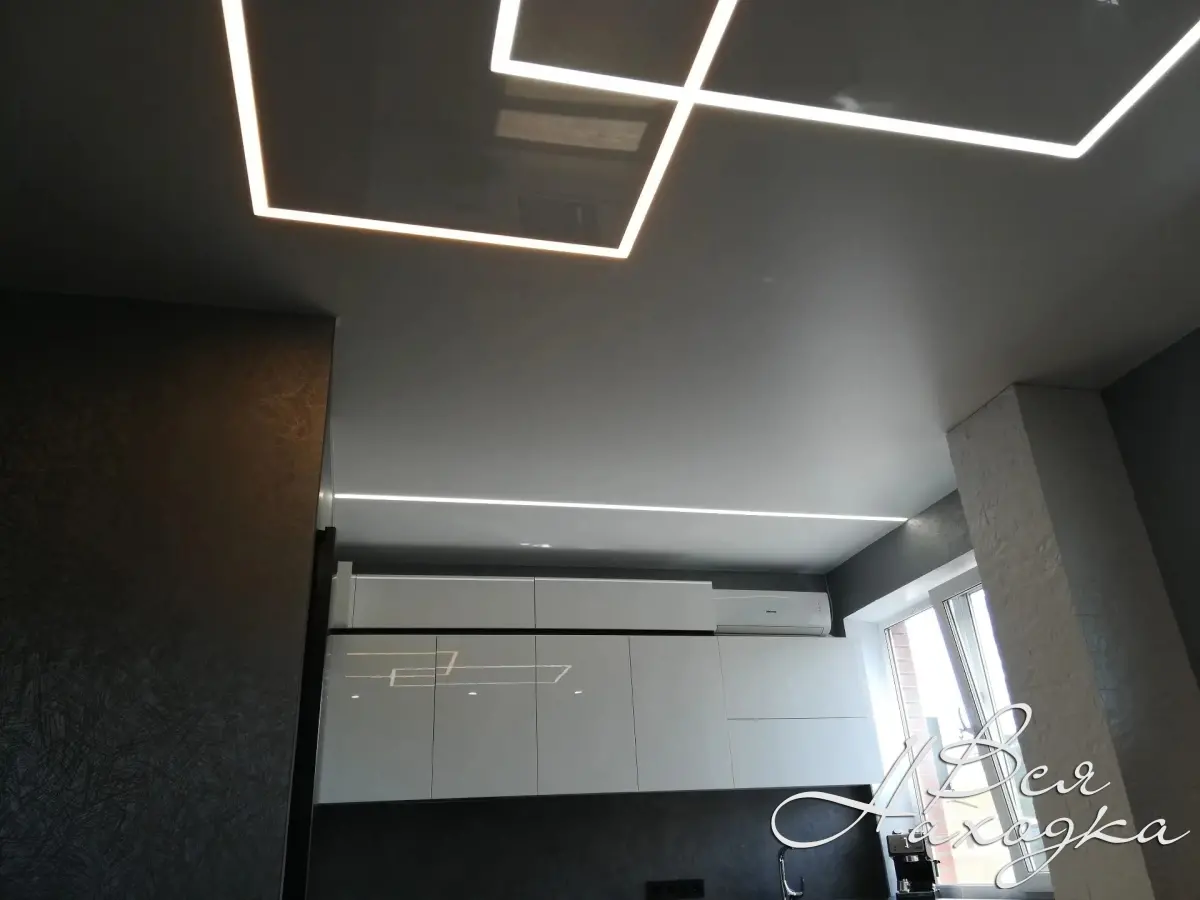 - Работаем с потолками любой сложности (двухуровневые, световые линии, спайка цветов, криволинейные и т.п.) интересны сложные решения по вашему эскизу.