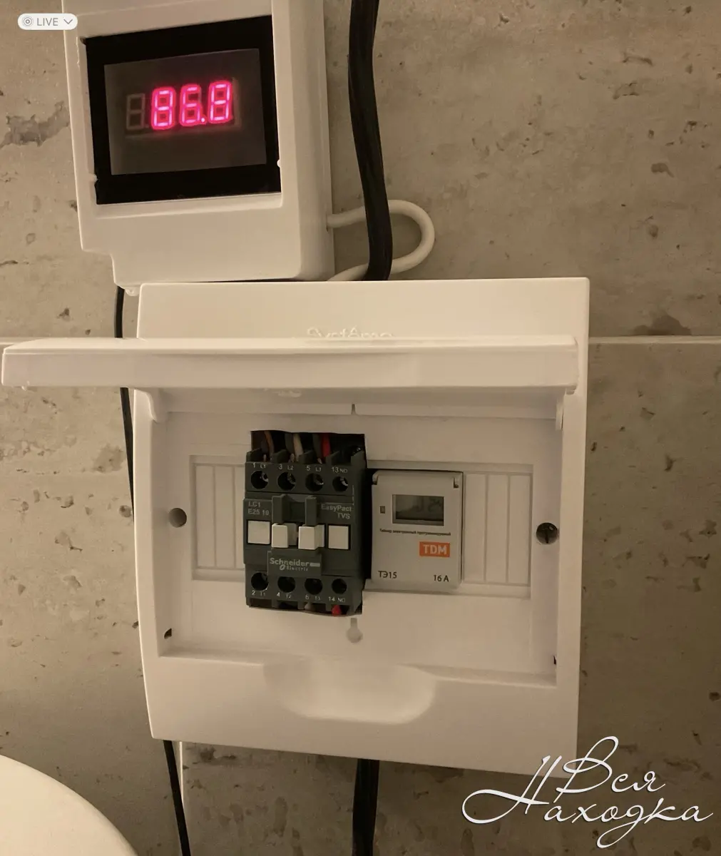 Я электрик по первому образованию, поэтому немного усовершенствовал. Температура -верхняя коробочка, нижняя управление.