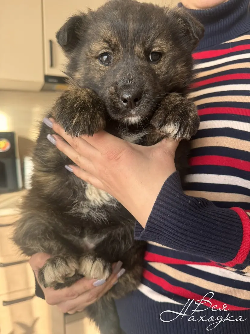 Две девочки и светлый мальчик с белым пятнышком на лбу, возраст около двух месяцев.