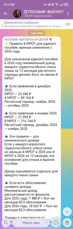 Добрый вечер! уже все знают, что с 1 января 2026 года МРОТ у ВСЕХ работающих родителей стал 8 МРОТ????