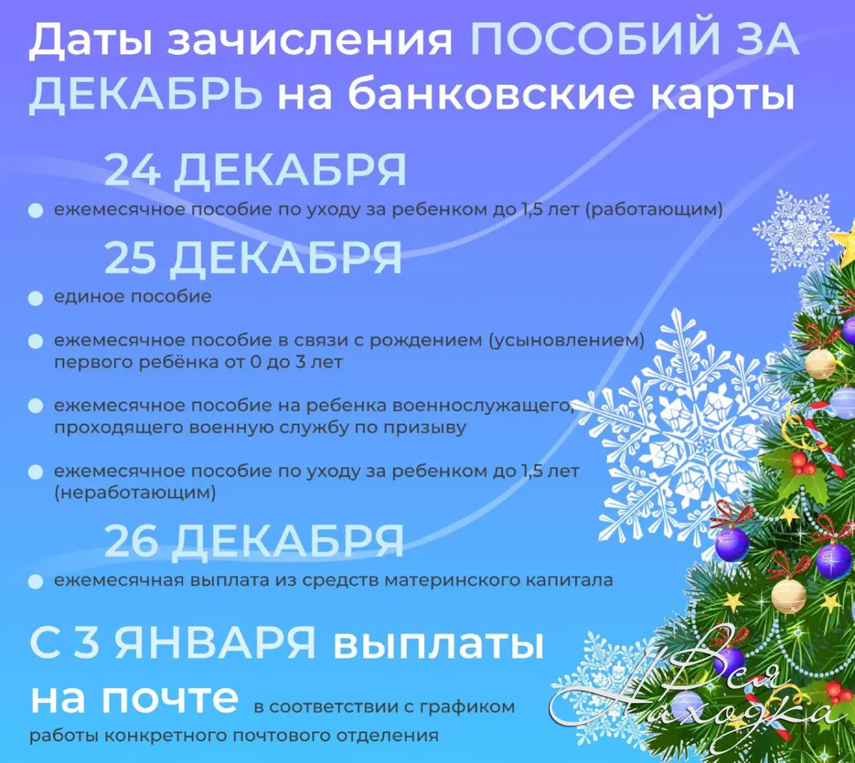 девочки Здраствуйте. а пособия за декабрь какого числа придет точно?