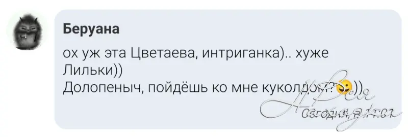 Слушай, мне интересна была эта тема, ты меня процитировала, оповестив о своём отношении. Появилось время ответить. Не нравится - не восхищайся, оповещать тоже было необязательно. Дальше иди мимо.