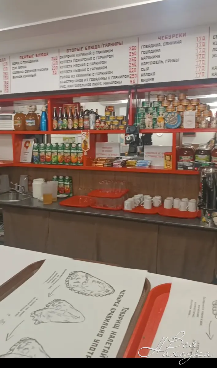 по эстетике СССР соскучилась, тогда рекомендую🤣 реально, окунешься в атмосферу 90 ых. Вообще антуражное место. 👍 Цены кстати актуальные, меню как в СССР никогда не изменяется. 🤭 на стенах вместо обоев газеты комсомольская правда , газеты реальные. и ТВ советский черно белый🤣