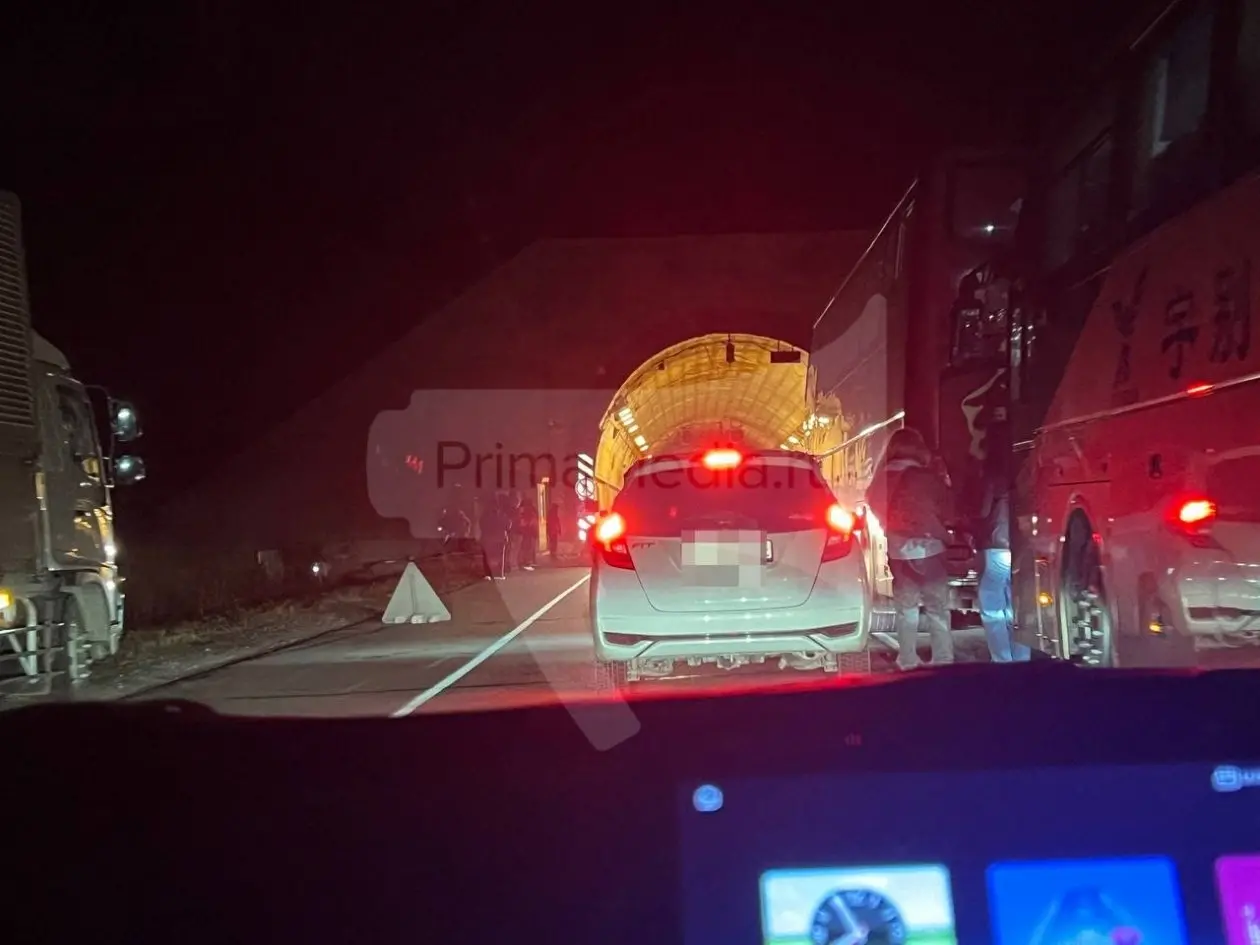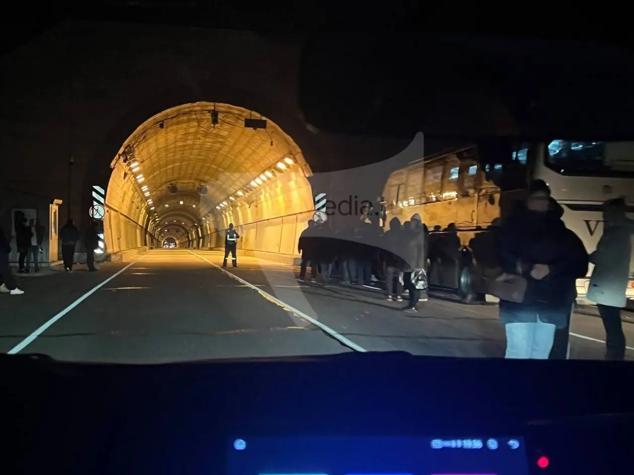 Движение заблокировано уже три часа. Десятки автобусов, которые возвращаются из Китая, и сотни машин стоят в неподвижном заторе из-за ЧП в туннеле.
