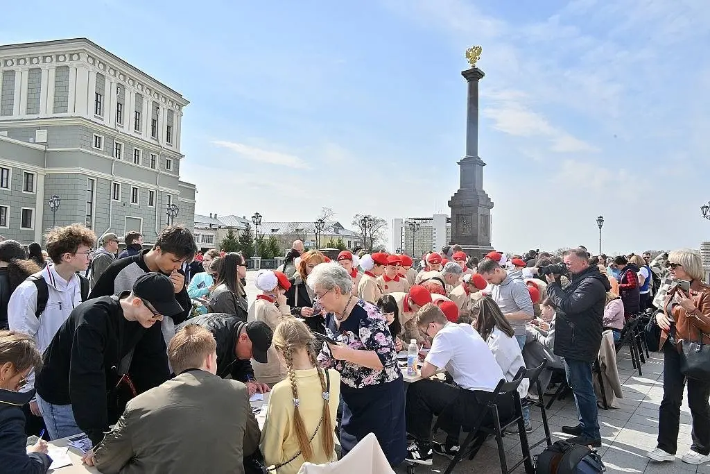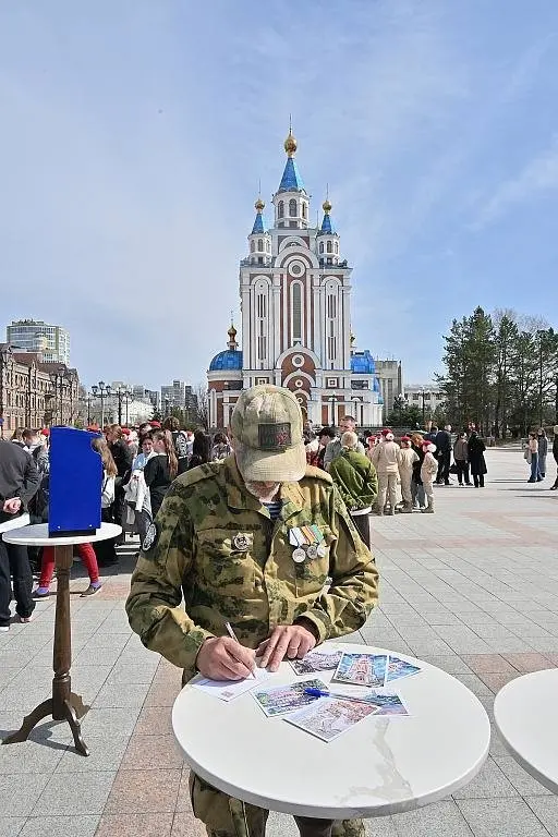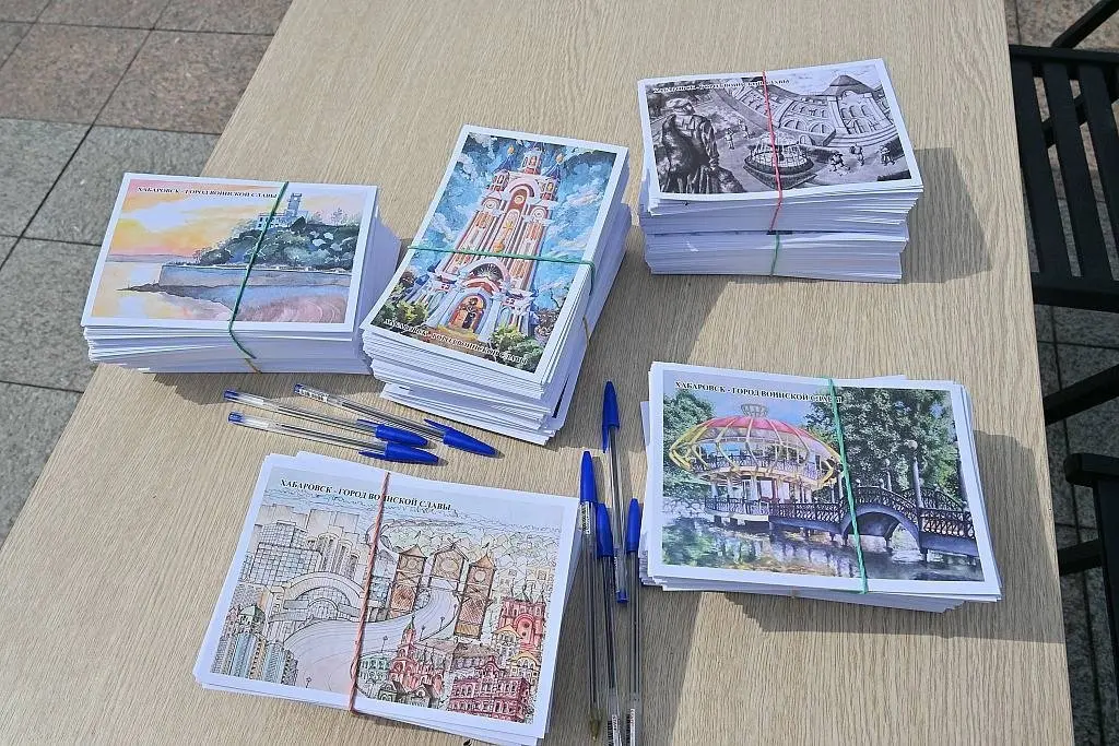 В конце апреля на площади Воинской славы прошло яркое масштабное событие: жители и гости Хабаровска подписали открытки с изображениями краевого центра. Примечательно, что дизайн открыток создан юными художниками — учащимися детских школ искусств и детской художественной школы г. Хабаровска.