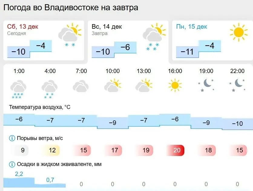 Морозная и ветреная погода ждёт Приморье в конце рабочей недели Читать ещё