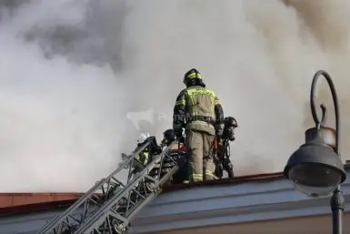 На кадры с места происшествия вмдно, как дым поднимается с другой стороны горящего здания откуда и началось возгорание.