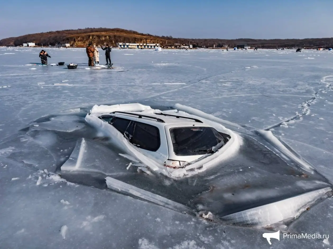 Типичное Приморье: рыбалка среди затонувших машин на льду — фото с места