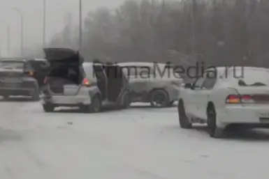 "Куда же вы претесь?": цепное ДТП под Владивостоком из-за снежной бури