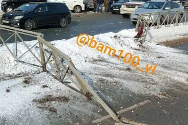 "Железо насквозь": автомобиль протаранил леера и вылетел на встречку во Владивостоке