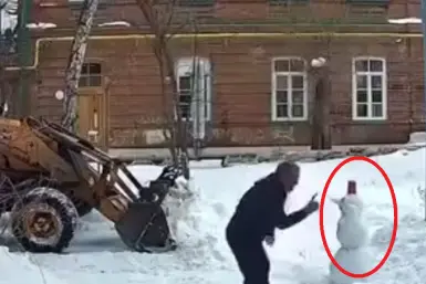 Милейший поступок работника коммунальной службы в Приморье попал на видео. Мужчина во время расчистки двора от снега увидел снеговика, которого слепили местные жители.