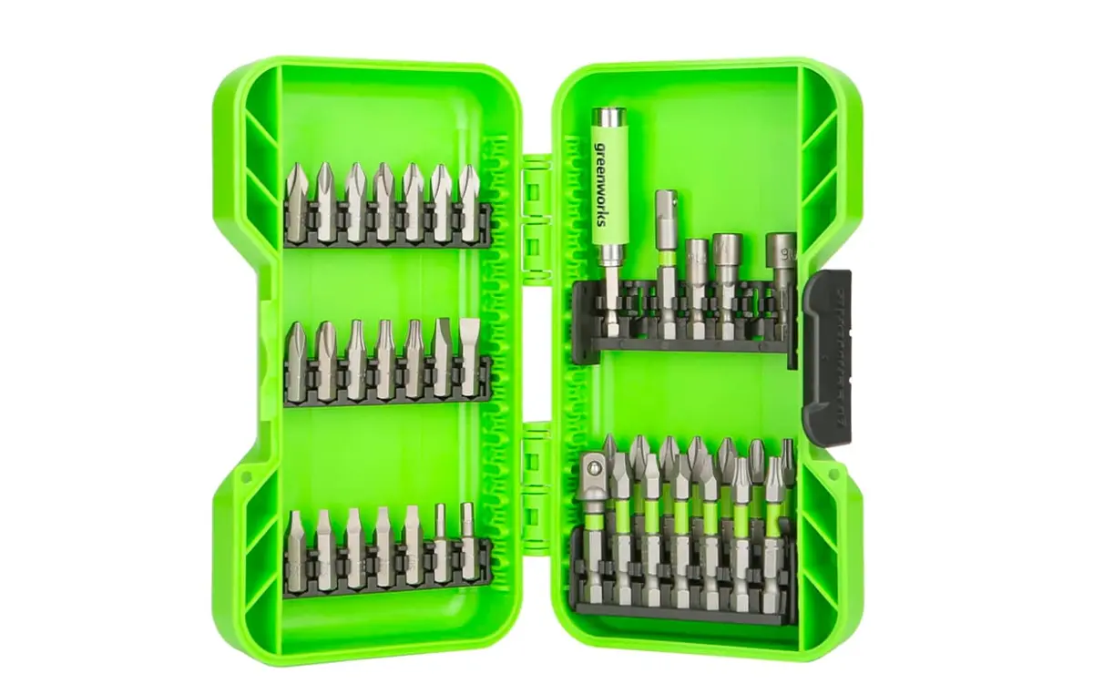 Набор бит, торцевых головок и адаптеров в кейсе Greenworks Арт. 2944207. Фото: greenworks-russia.ru