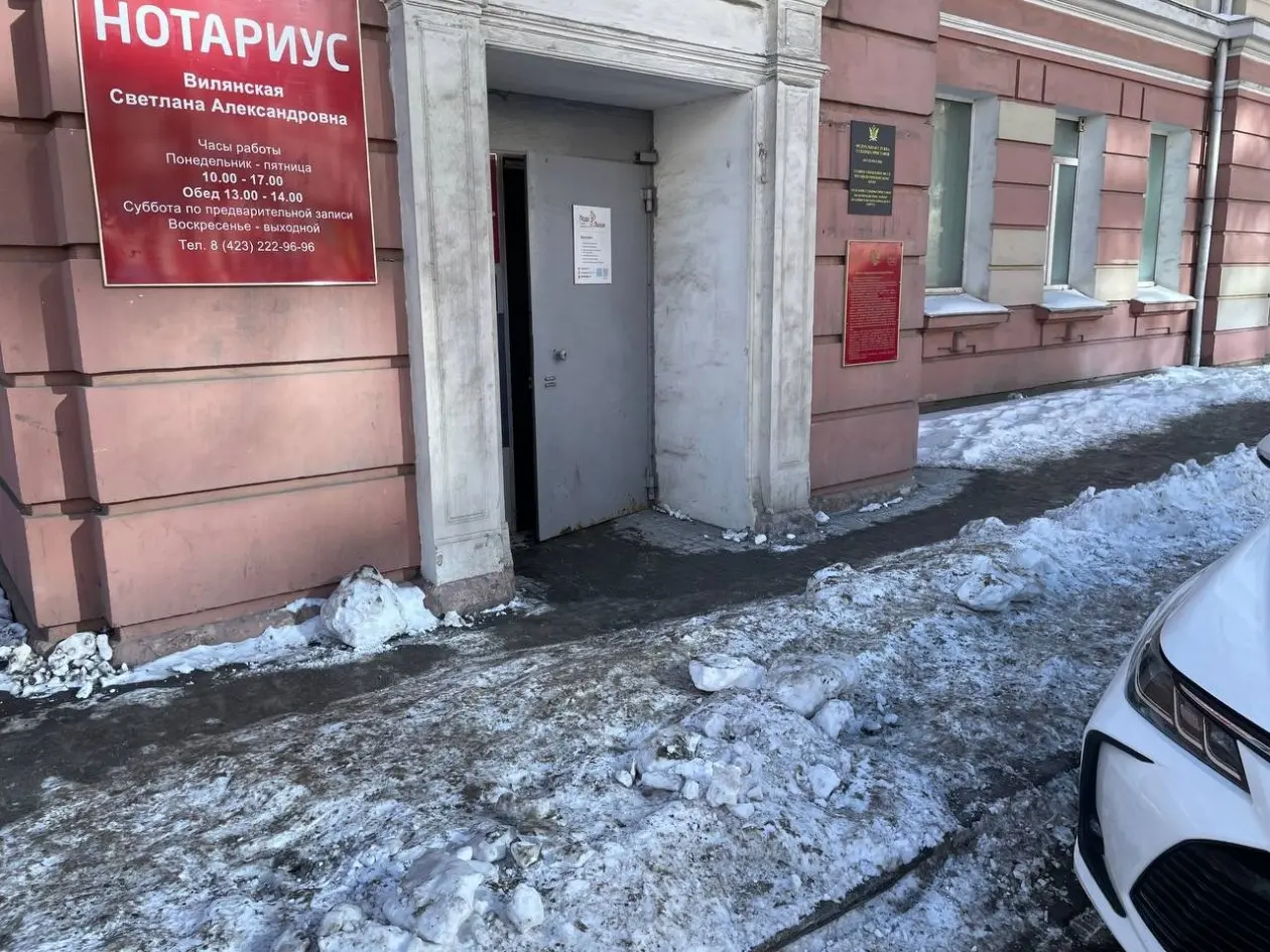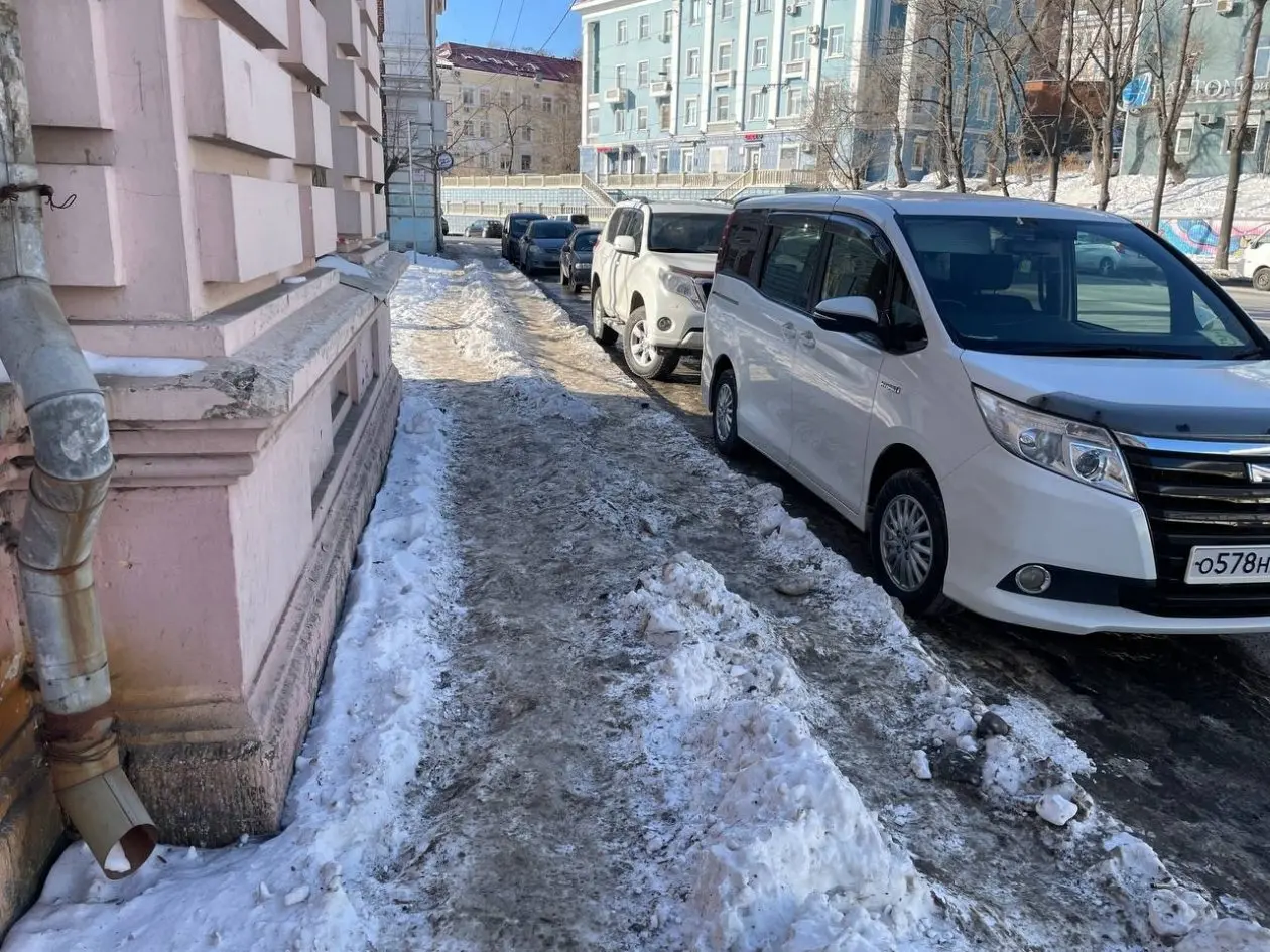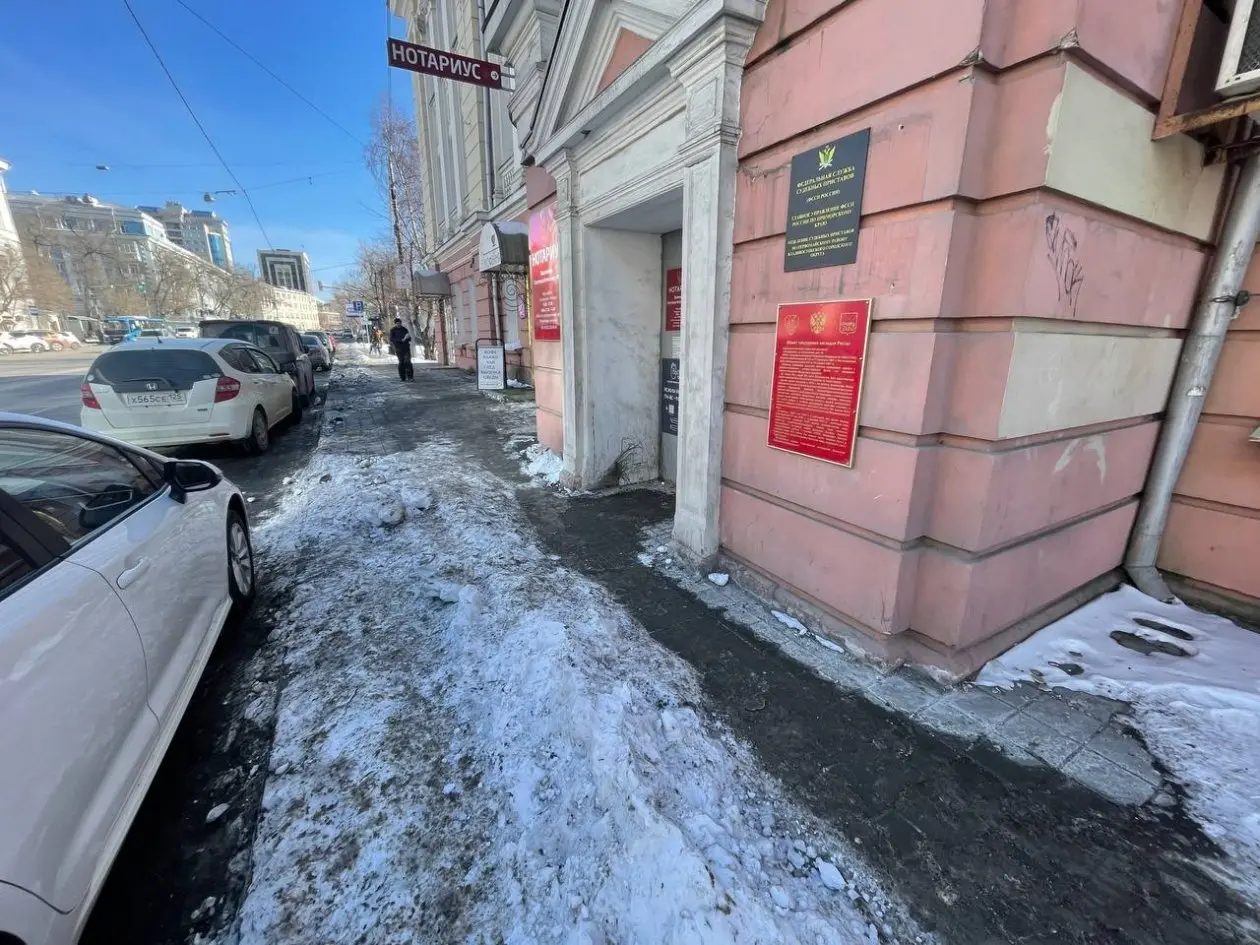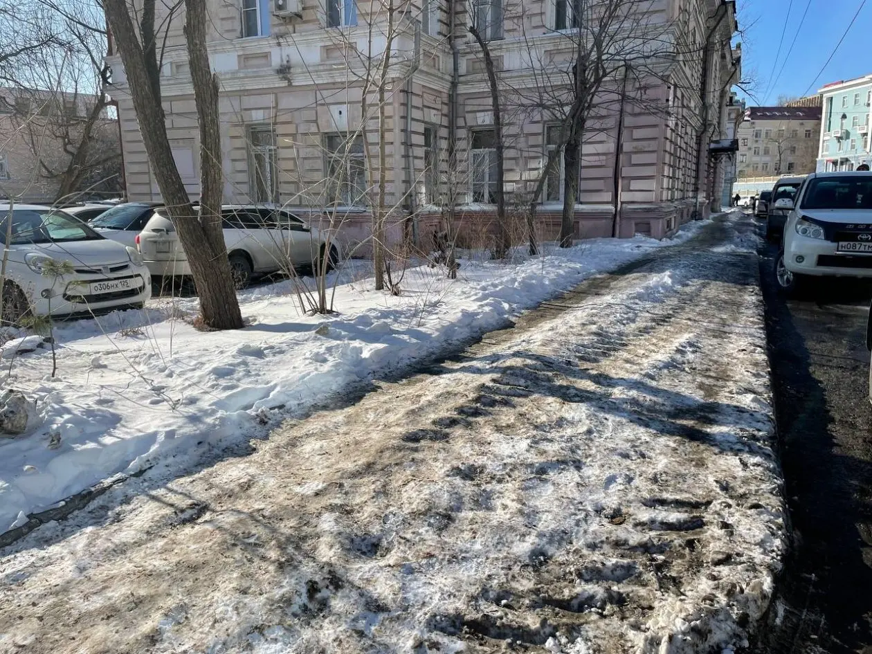 Очищенный тротуар возле дома №85 по улице Светланской. Фото: ИА PrimaMedia