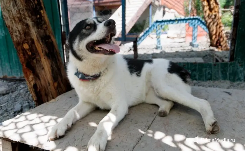 Спасённая в лесу в 2023 году собака наконец-то обрела постоянный дом. Фото: Евгений Кулешов, ИА PrimaMedia.ru