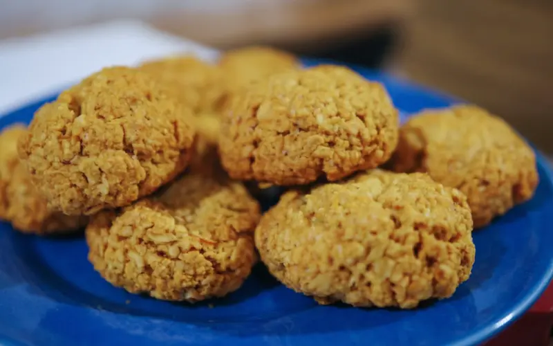 Основа рецепта — овсяные хлопья, богатые клетчаткой. Они надолго дают чувство сытости и помогают избежать резких скачков сахара в крови. Печенье получается мягким внутри и слегка румяным снаружи.