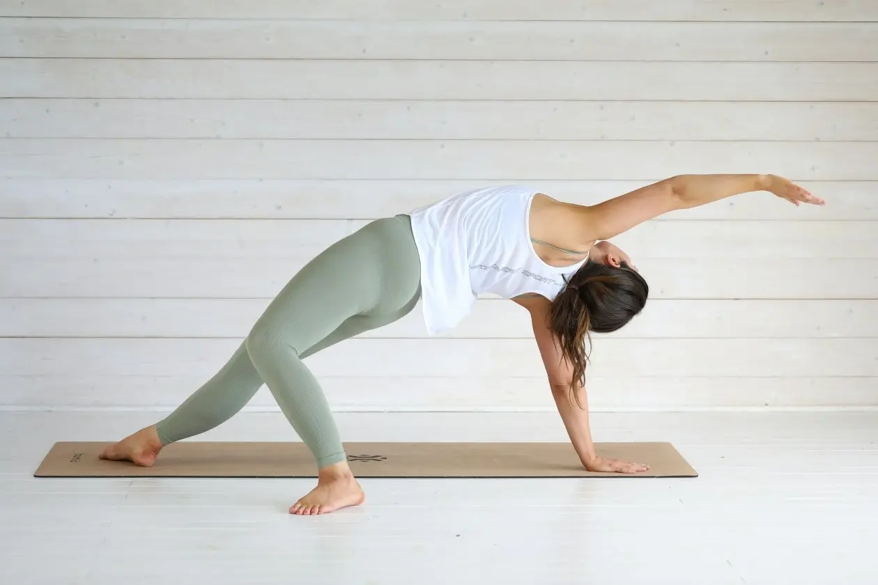 Как выполнить упражнение-комбо? Начало с прыжка влево в присед: Прыжок влево в присед активирует мышцы ног, ягодиц и спины. Приседание помогает растянуть и развить гибкость в нижней части тела. Переход в выпад назад: Следующий шаг — это выпад назад, который прорабатывает бедра, ягодицы и спину. Опора на руки помогает укрепить мышцы плечевого пояса, а также активирует корпус для стабилизации. Планка: Затем переходим в классическую планку. Это упражнение эффективно укрепляет мышцы кора, а также мышцы плеч и спины. Планка требует максимальной концентрации и силовой выносливости. Переворот на обратную планку и вытягивание руки вверх: Это движение способствует проработке плечевых и грудных мышц. Переворот на обратную планку активирует всю верхнюю часть тела, а вытягивание руки вверх помогает улучшить гибкость и координацию. Что дает это упражнение? Проработка всех групп мышц: Упражнение-комбо включает в себя элементы кардио, силовых и растягивающих упражнений, которые активируют все группы мышц тела, включая пресс, ноги, спину, плечи и грудные мышцы. Улучшение координации и гибкости: Каждый этап упражнения требует от вас не только силы, но и способности управлять своим телом, что помогает развить координацию и гибкость. Развитие силы и выносливости: Это высокоинтенсивное упражнение активирует не только мышцы, но и вашу выносливость, так как оно заставляет работать все тело сразу.Важно, что это упражнение подходит только для опытных людей, которые не имеют проблем с суставами и в целом с состоянием здоровья, подчеркивает в своем блоге Панфилова. Рекомендуется выполнять упражнение на степ-платформе (до 25 см), хотя также можно выполнять без оборудования, если нет доступа к платформе.