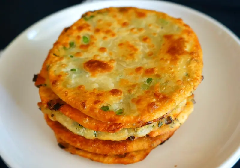 Эти тонкие и хрустящие лепешки готовятся из минимального набора продуктов — яиц, муки и зеленого лука, но по вкусу легко соперничают с пирожками. Их можно есть вместо хлеба или как самостоятельное блюдо.
