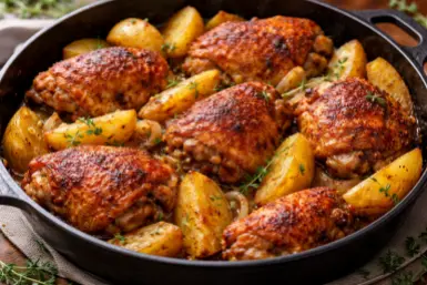 Куриные бёдра и 1 кг картошки – вкусный ужин на сковороде на скорую руку