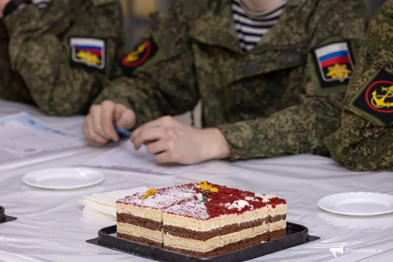 PrimaMedia, 27 февраля. В преддверии Дня защитника Отечества в пятницу, 20 февраля, в 155-й бригаде морской пехоты Тихоокеанского флота (ТОФ) прошло по-настоящему домашнее мероприятие. Приморское отделение "Народного фронта" (НФ) при содействии компании "Владхлеб" организовало для военнослужащих по призыву интеллектуально-гастрономический вечер. Порядка 70 бойцов не только проверили свои знания о Приморье, но и попробовали кондитерскую продукцию от местного производителя.
