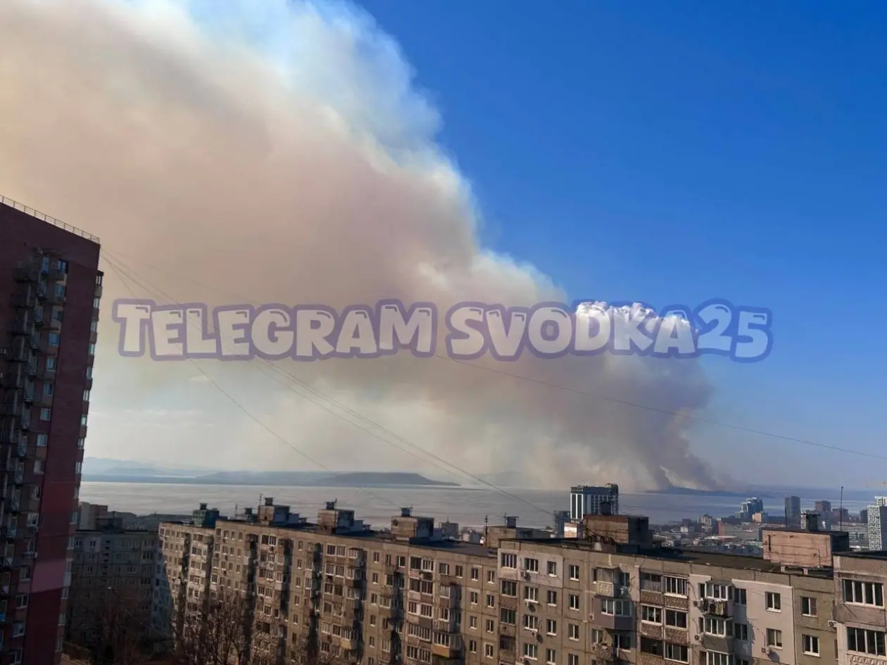 "Всё в дыму": мощный пожар вспыхнул на берегу Амурского залива – видео