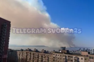 "Всё в дыму": мощный пожар вспыхнул на берегу Амурского залива – видео