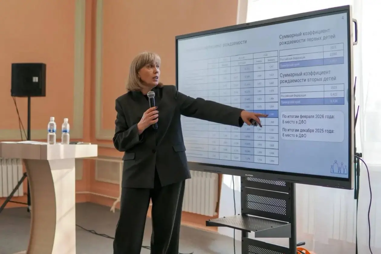 Открывая мероприятие, глава ведомства отметила, что ситуация с рождаемостью в крае соответствует общероссийским трендам. Суммарный коэффициент рождаемости снижается, но остается выше среднероссийского уровня: по РФ за февраль 2026 года он составил 1,359, в Приморье — 1,375.