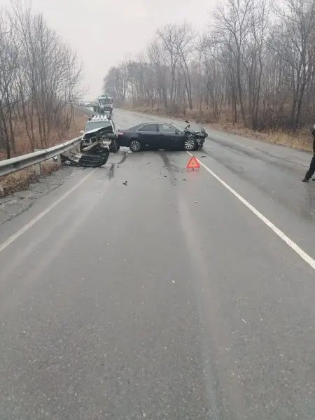 "По предварительным данным, 38-летний водитель автомобиля Toyota Camry, двигаясь со стороны Находки в направлении Арт`ма, не обеспечил постоянный контроль за движением транспортного средства, нарушил правила расположения транспортного средства на проезжей части и совершил столкновение с автомобилем Suzuki Escudo под управлением 68-летнего мужчины", — говорится в сообщении.