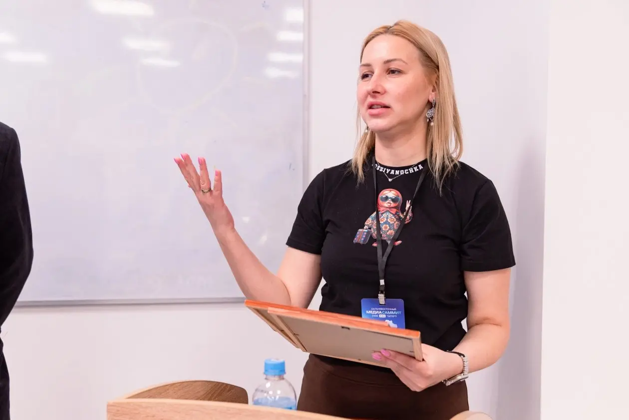 — У каждого публичного человека есть узнаваемые "якоря". Например, у кого-то это особенности макияжа или причёски, по которым его легко идентифицировать. Посмотрите на блогеров и медийных персон: мы примерно понимаем, как выглядит тот или иной человек. То же самое работает и в более широком контексте — у режиссёров тоже есть свой почерк. Мы отличаем, как снимают Гай Ричи, Кубрик или Тарантино, потому что у них сформирован узнаваемый стиль. И в этом смысле каждый, кто работает с контентом, должен думать о собственных визуальных "якорях" — цветовой палитре, стиле, подаче. Всё это помогает формировать первое впечатление и привлекать внимание аудитории. Ваша главная задача — создать узнаваемый образ и удержать внимание зрителя или читателя с первых секунд, — отметила спикер.
