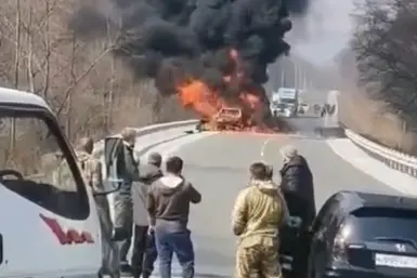 "Люди успели выпрыгнуть?": на трассе в Приморье полыхает авто - жуткие кадры