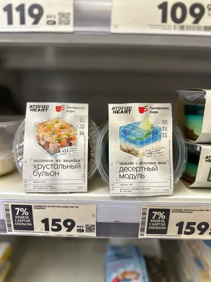 Также "Пятёрочка" выпустила лимитированную линейку продуктов с необычными вкусами. При покупке они дают преимущество в розыгрыше, умножая количество начисляемых "атомных сердец" и приближая участников к крупным призам. Эти же продукты интегрированы в саму игру — в виртуальном мире появляется "Пятый отдел снабжения".