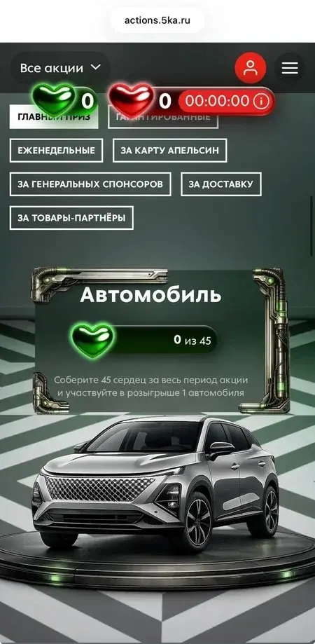 5 сердец в неделю — сертификаты "Пятёрочки" и на гаджеты для умного дома 7 сердец — игровая приставка, наушники, робот-пылесос 10 сердец — телевизор, премиальный смартфон, игровой ноутбукГлавный приз — автомобиль — разыгрывается среди всех, кто накопит 45 сердец за весь период акции.