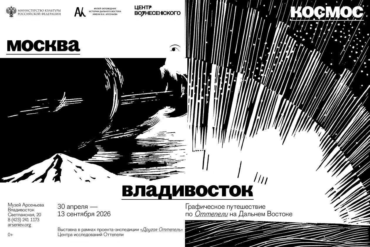PrimaMedia, 21 апреля. 30 апреля в Главном корпусе Музея Арсеньева откроется выставка "Москва — Космос — Владивосток. Графическое путешествие по Оттепели на Дальнем Востоке" (0+), организованная совместно с московским Центром Вознесенского. Проект расскажет о искусстве периода Оттепели на Дальнем Востоке — времени расцвета региона, сопровождающегося периодом возникновения уникального отечественного графического искусства. Выставка даст старт проекту "Другая Оттепель" (0+), цель которого произвести ревизию малоизвестных сюжетов культурной истории 1960-х годов в регионах России, сообщила пресс-служба музея.