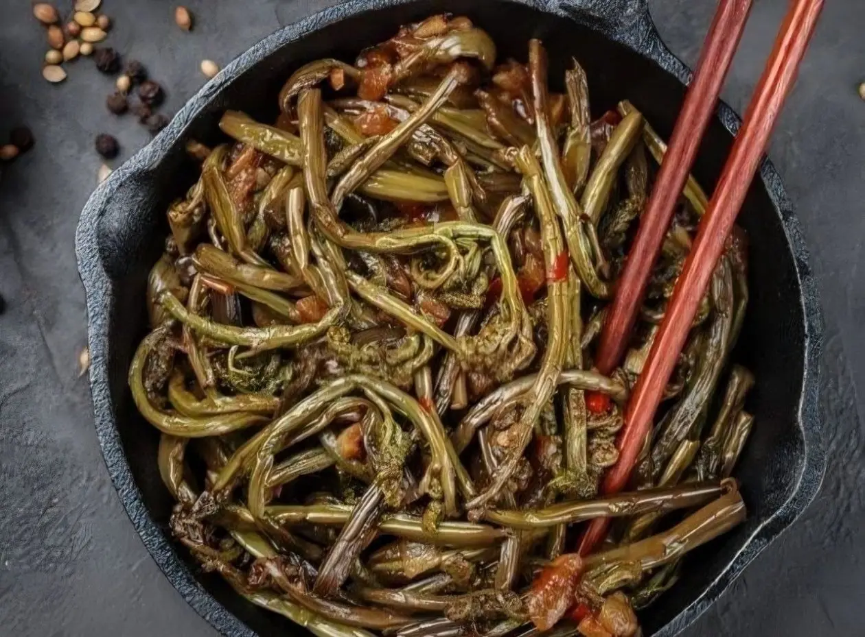 Подготовить папоротник: свежие побеги отварить в подсоленной воде 5–7 минут, слить воду и промыть холодной водой, чтобы убрать горечь, затем нарезать на удобные кусочки длиной 3–4 см. Сделать заправку: лук нарезать полукольцами, чеснок мелко порубить, разогреть масло в сковороде, обжарить лук до прозрачности, добавить чеснок и красный перец и прогреть ещё около 30 секунд. Смешать: снять сковороду с огня, добавить соевый соус и уксус, перемешать и залить этой горячей смесью нарезанный папоротник. Дать настояться: оставить минимум на 30 минут (а лучше на 1–2 часа) при комнатной температуре или в холодильнике — за это время папоротник пропитается, станет мягким, но сохранит упругость. Перед подачей салат можно посыпать жареным кунжутом: вкус получается пряным, слегка острым, с землистыми нотками, очень похожим на то, что продают на дальневосточных рынках. Разница лишь в том, что здесь вы сами собрали основу блюда в сахалинском лесу. Зачем ехать на гастротурДля туриста такой салат — не просто закуска к ужину, а способ буквально попробовать остров на вкус. За одной тарелкой папоротника стоит целая история: про лесные прогулки, про корейские семьи, переехавшие на Сахалин, про рыбу, без которой здесь не обходится ни один праздник.