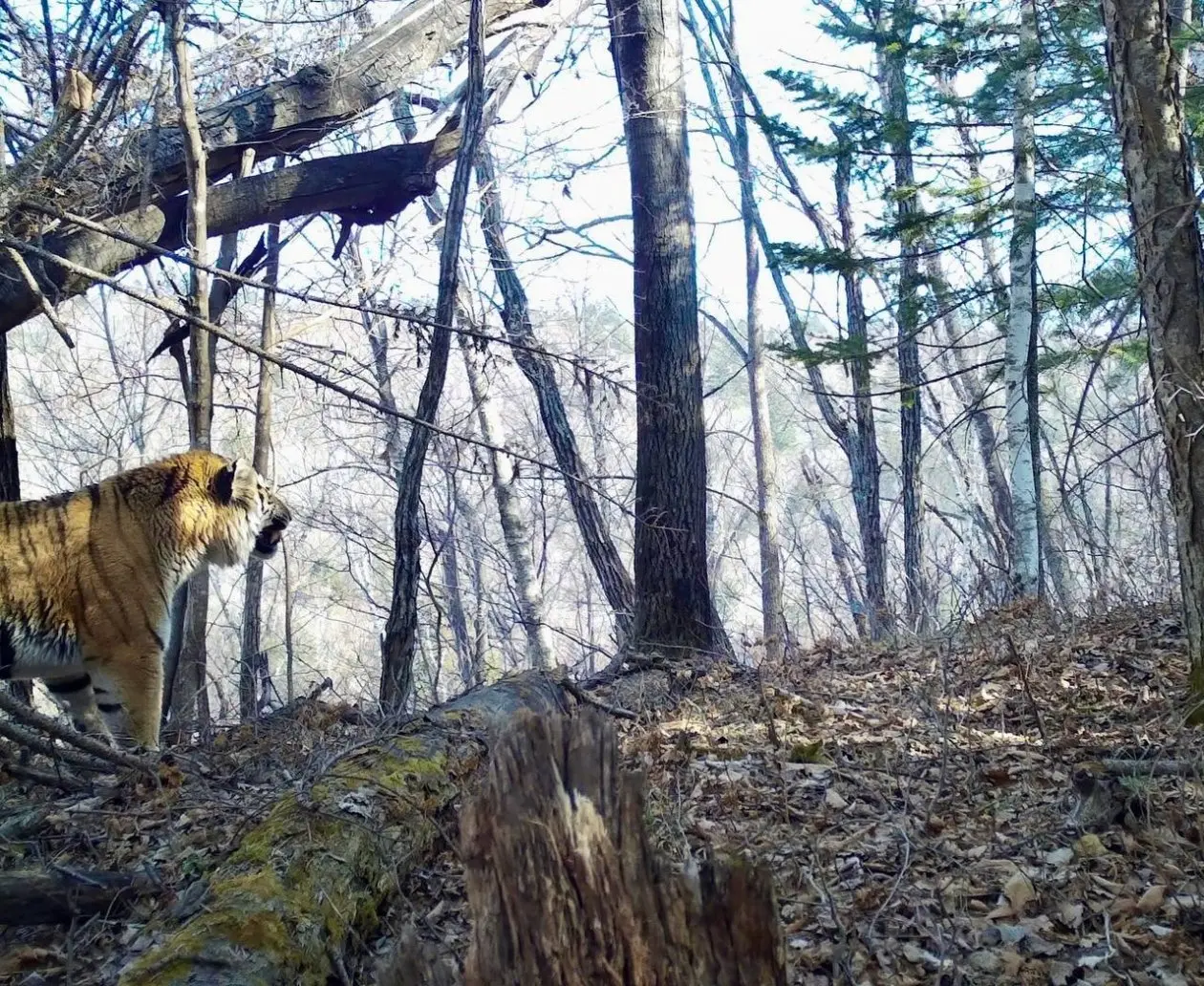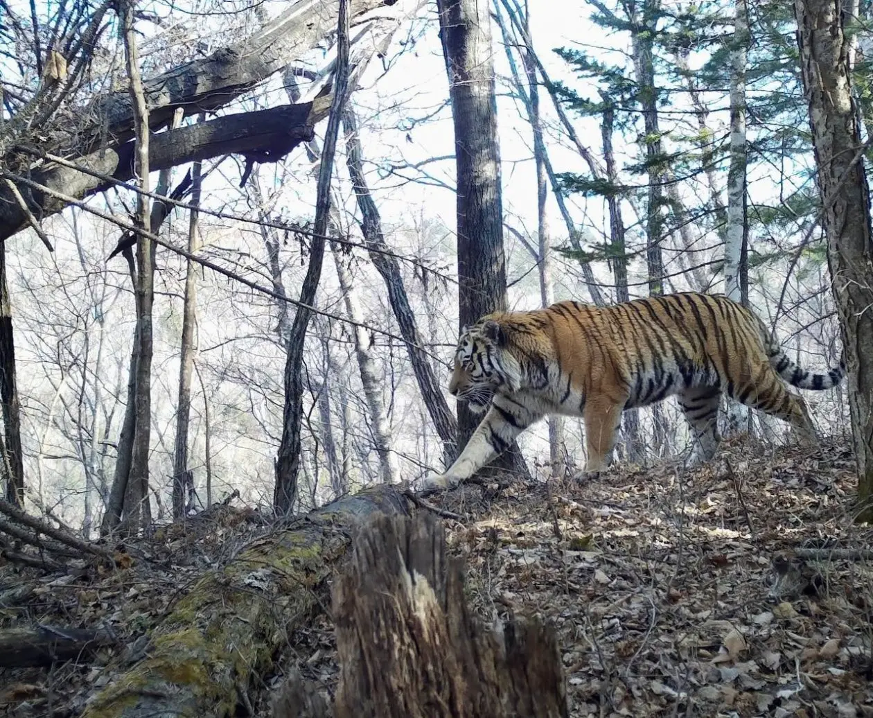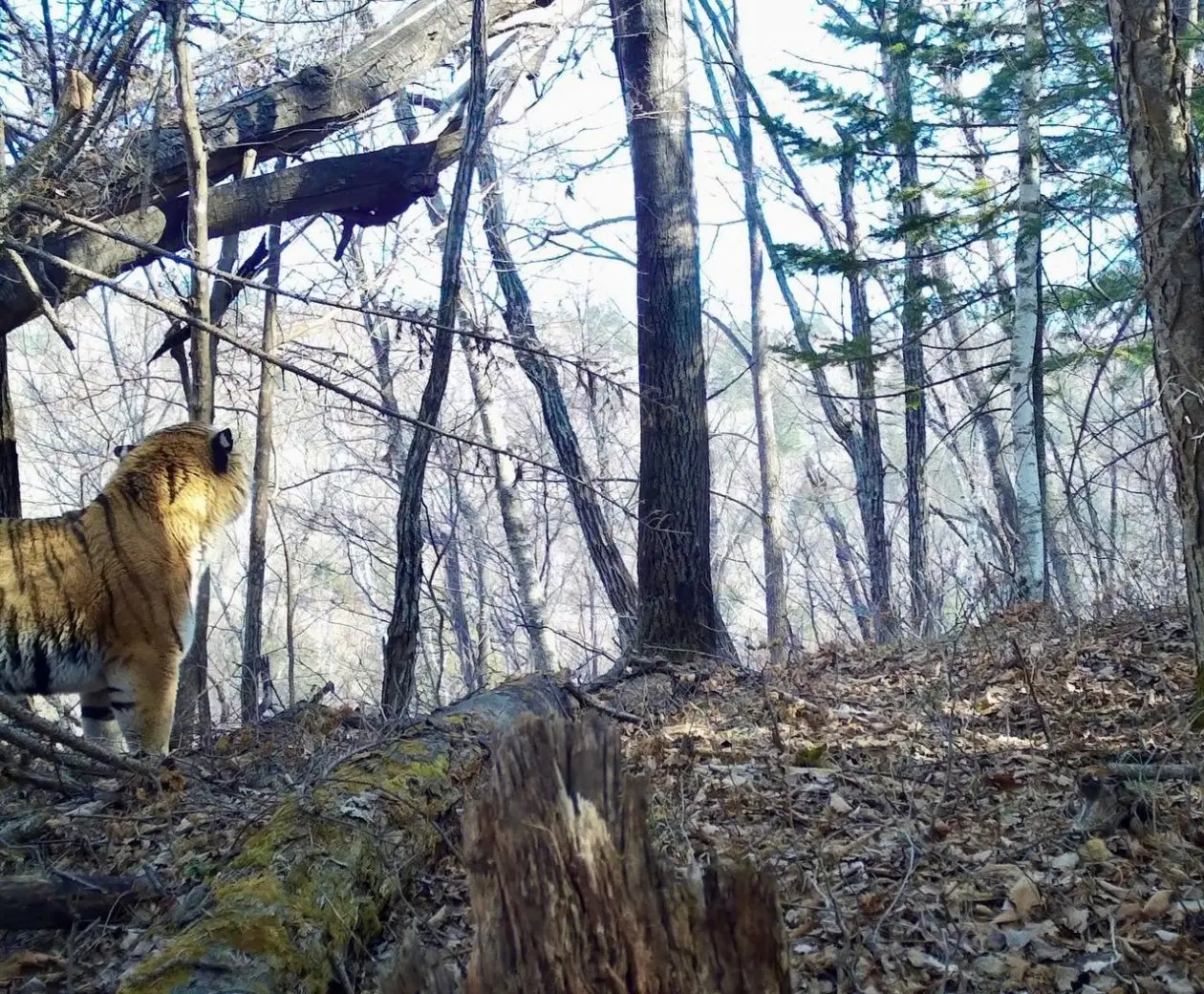 Тигр отвлёкся от дел ради красивого вида в Приморье