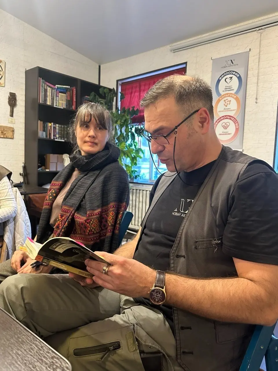 Речь шла о нравственных выборах, с которыми люди сталкиваются каждый день: следовать импульсивным желаниям или опираться на более широкое понимание своего места среди других людей и в обществе. Участники приводили примеры из собственной жизни — от бытовых ситуаций до профессиональных дилемм, — сопоставляя их с отдельными фрагментами текста Марка Аврелия.